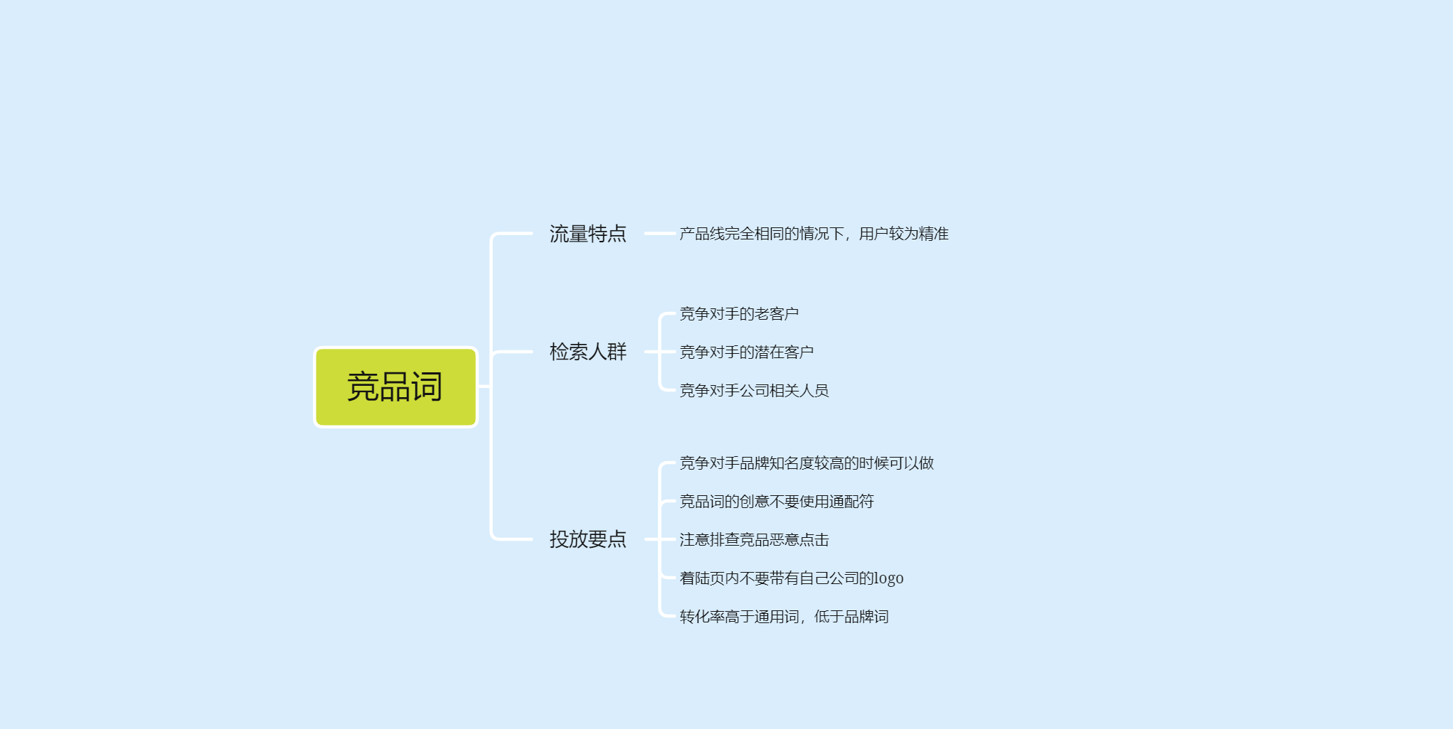 目前常见的关键词分类一共九种,分别是:品牌词、产品词、通用词、人群词、竞品词、